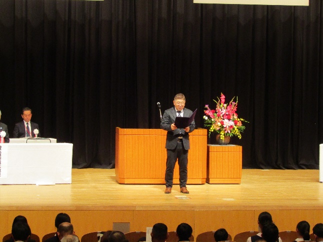 第一部の表彰式では、全国防犯栄誉金章受賞者のご披露、同銀章、銅章の伝達、県防犯功労者・団体を始め、防犯ポスター入選者等を含めて198名、45団体の皆様が表彰の栄に浴しました。表彰に続き、防犯ボランティア代表として浦和東警察署管内の全国防犯功労団体章受賞者である傳法昌幸様が「地域全体で手を携え、共に力を合わせて防犯まちづくりに取り組んでいく。」と力強く宣言しました。