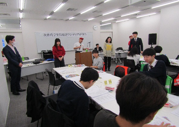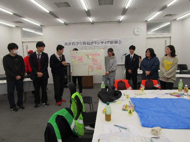 パトロール実習後は、班ごとにパトロール中に気が付いたことなどを発表し実習を振り返っていました。また、参加者からは「パトロールで日常では気づかない所にも気付くことができました。」「パトロールであいさつをすると相手もあいさつをしてくれました。あいさつは大事なこと思いました。」等の意見が多く聞かれ、最後に受講証明書を交付し盛会のうちに終了しました。
