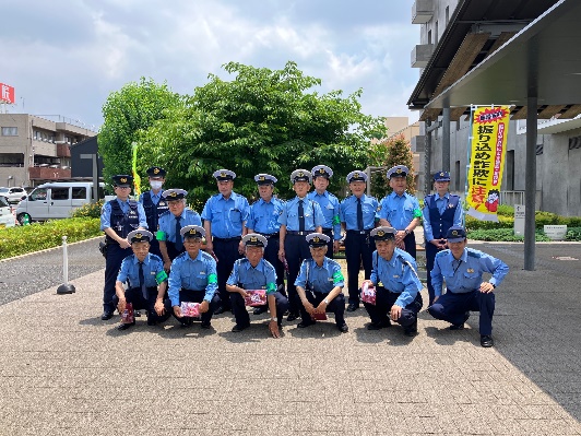 自主防犯団体と警察が連携して新座市役所前で犯罪抑止キャンペーン活動を実施しました。
