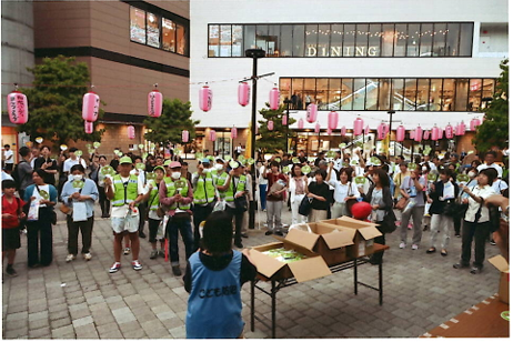 自主防犯団体と警察が連携してショッピングモールで犯罪抑止キャンペーンを実施しました。