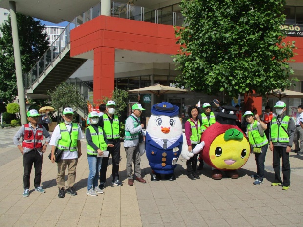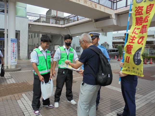 自主防犯団体と警察が連携して公共施設前で犯罪抑止キャンペーンを実施しました。