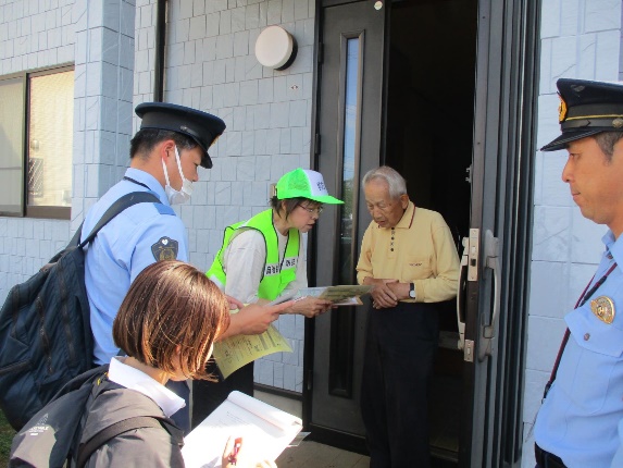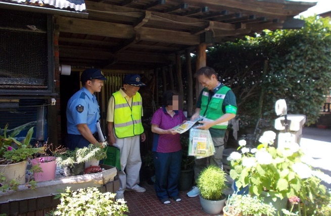 自主防犯団体と警察が連携して川越市内で戸別訪問を実施しました。