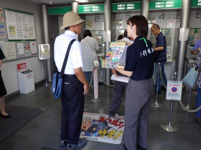 ボランティア団体等と警察が連携して金融機関前で犯罪抑止キャンペーンを実施しました。