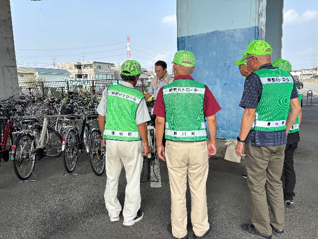 自主防犯団体と警察が連携して駐輪場周辺で犯罪抑止パトロール活動を実施しました。
